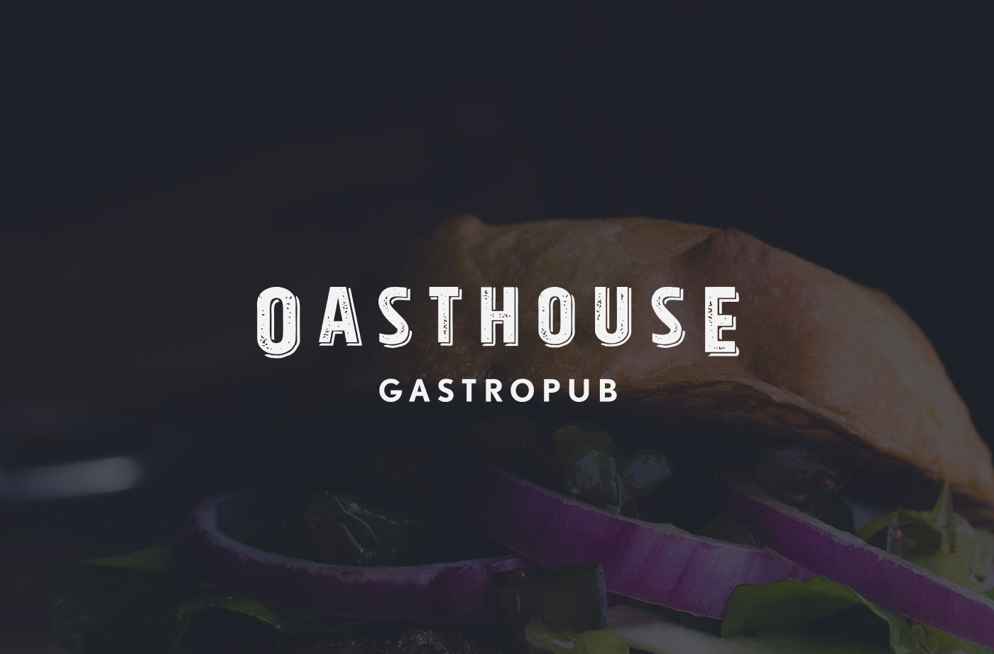 Oasthouse Gastropub (recently changed to Oasthouse Kitchen + Bar) is an upscale casual restaurant in Austin featuring draft beers and locally sourced burgers and sandwiches, as well as craft cocktails and wine. Uara was hired to create an identity that would represent "upscale casual", while evoking the rustic quality of the traditional European buildings it is named after.